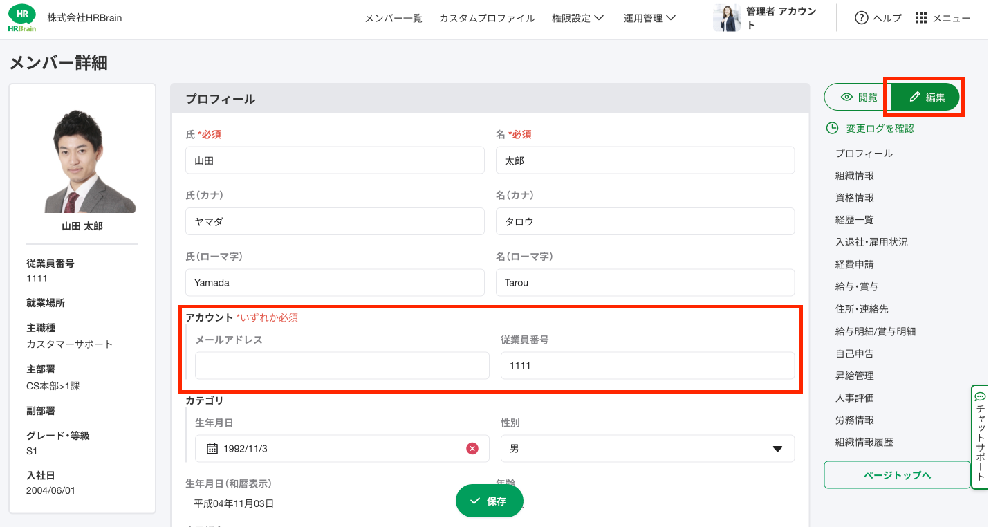 社員名簿/メールアドレス・従業員番号を変更したい