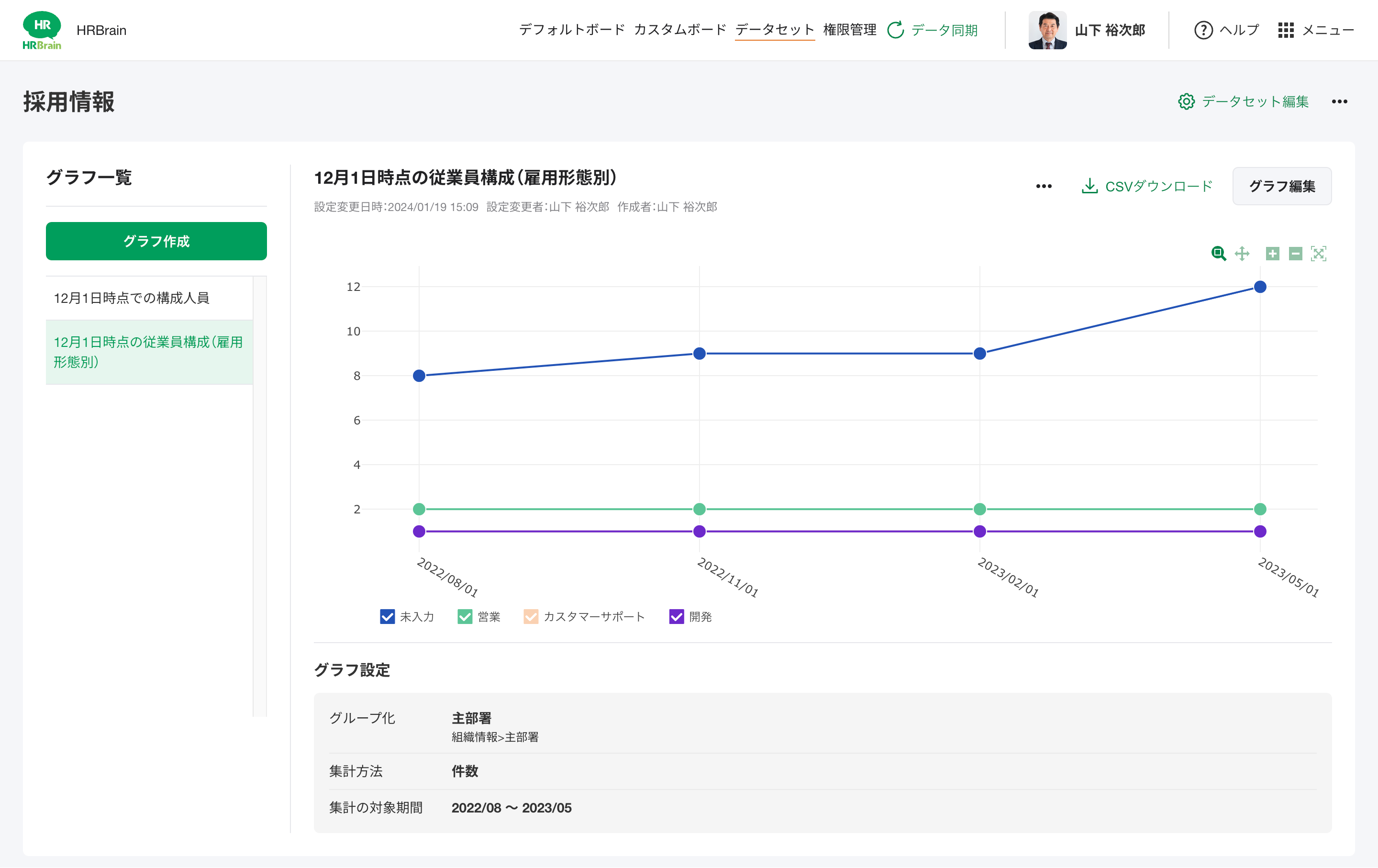 データセットでは、社員名簿で管理している項目を選択し、グラフを作成する上での情報のまとまりを設定・管理できます。