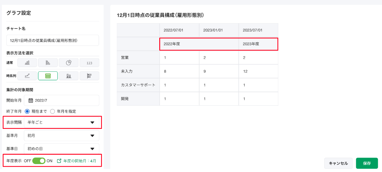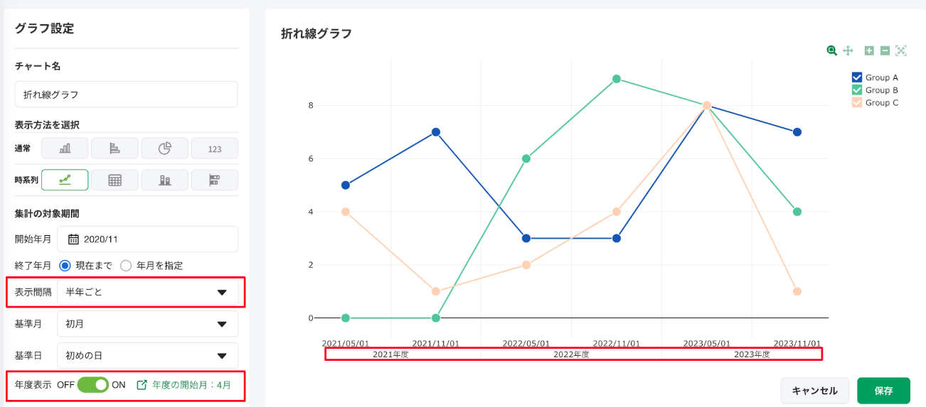 表示間隔が半年の場合:年度表示