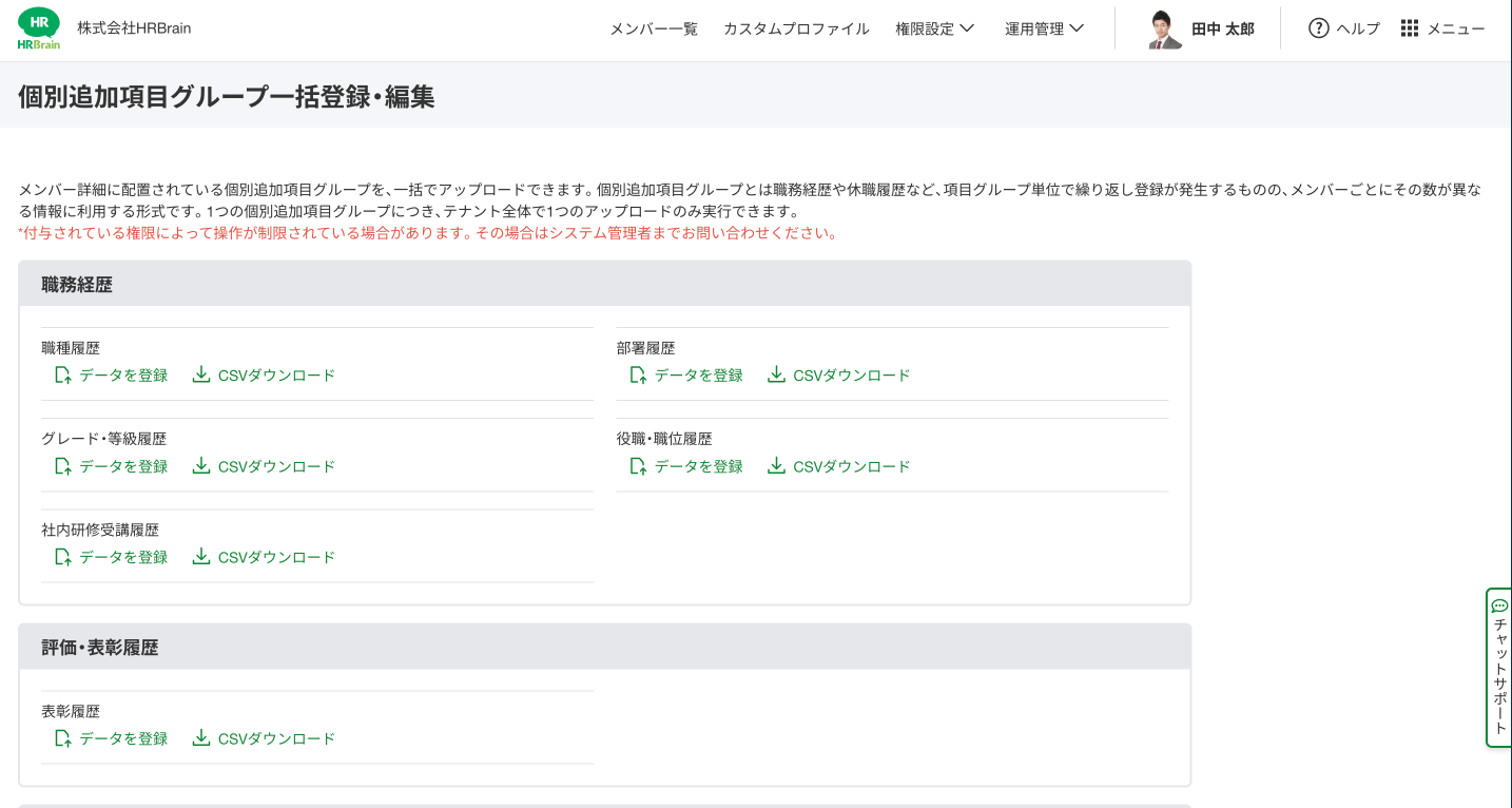 ・ロールの閲覧/編集権限がある項目のみ表示されます。権限がない項目はエクスポートされません