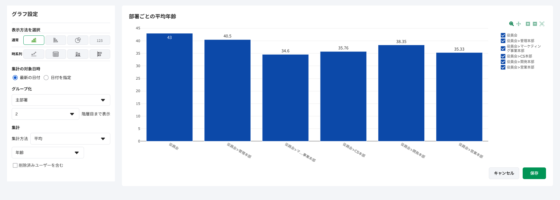 部署ごとの平均年齢の表示