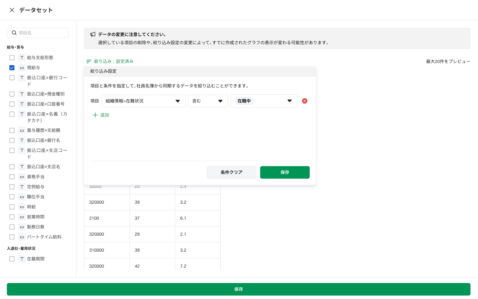 項目選択 :給与(数値項目)