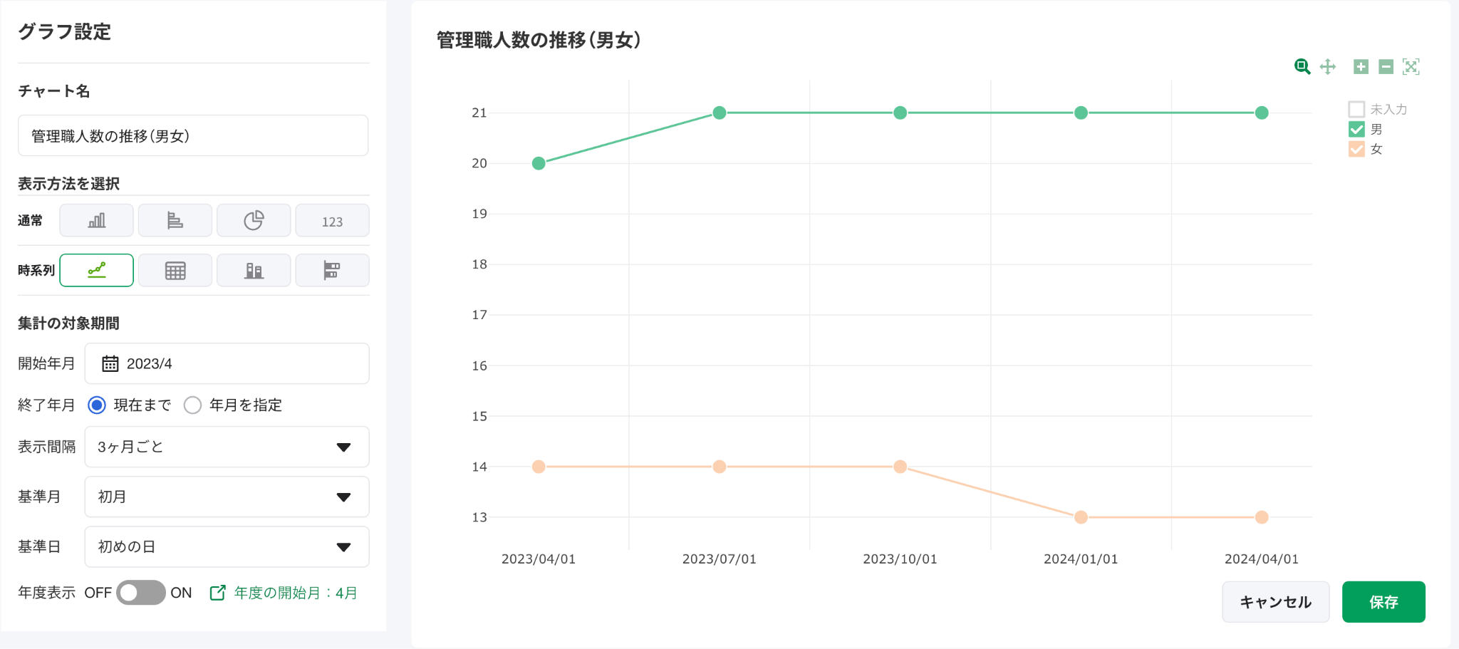 表示方法 :折れ線グラフ