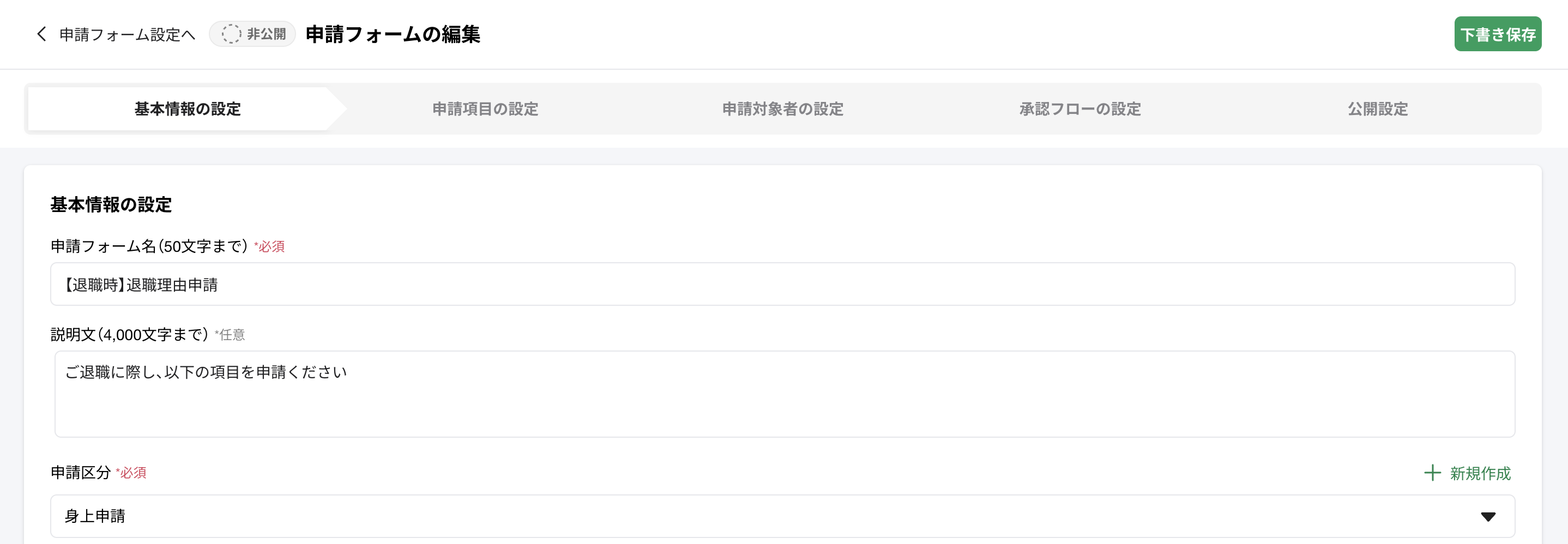 ワークフロー機能より、申請フォームを作成します。
