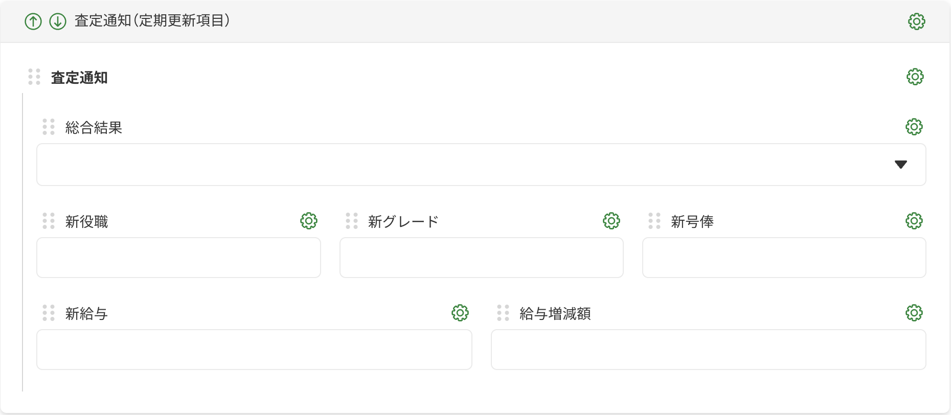例)評価結果、新役職、新等級、新号俸、新給与など