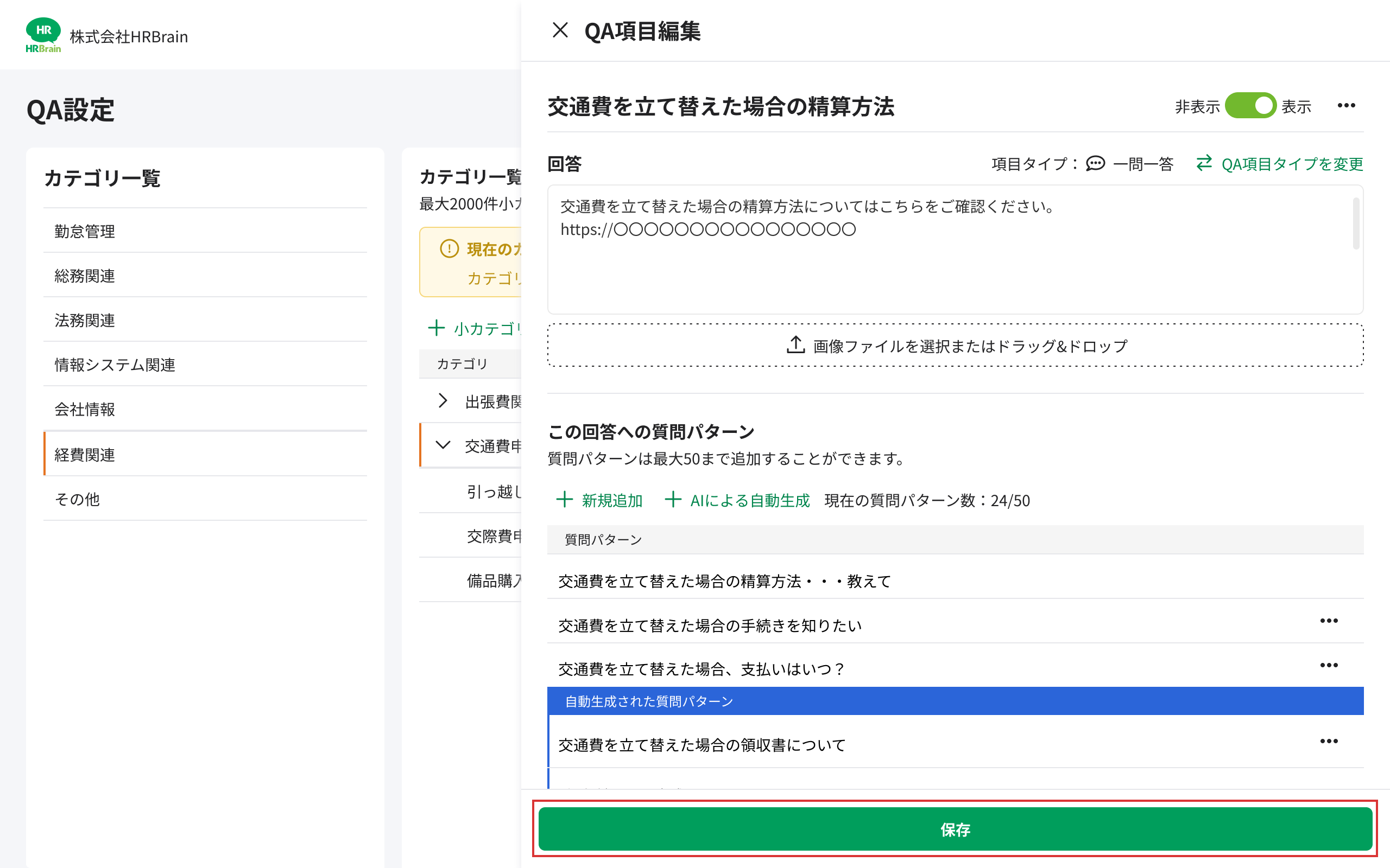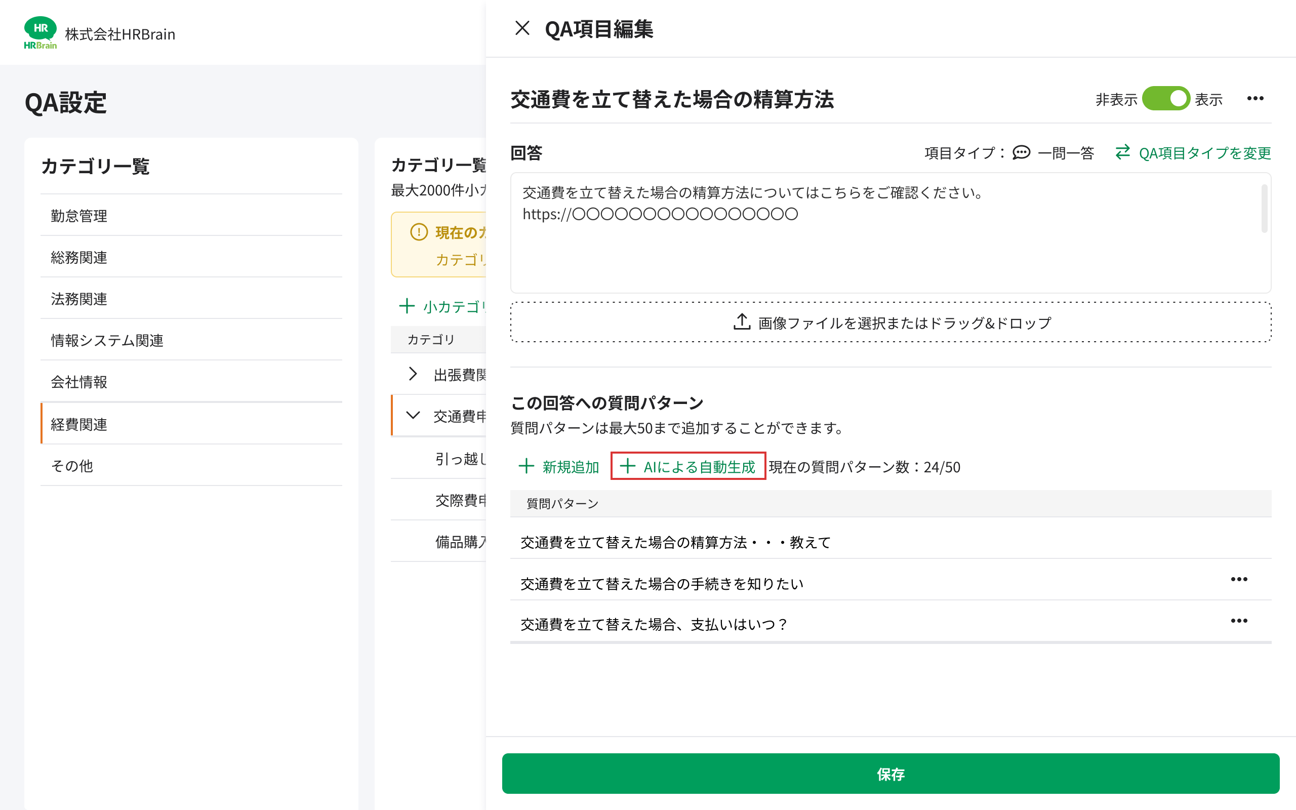 生成された質問パターンの内容をご確認のうえ、必要あれば編集・削除を実施ください。