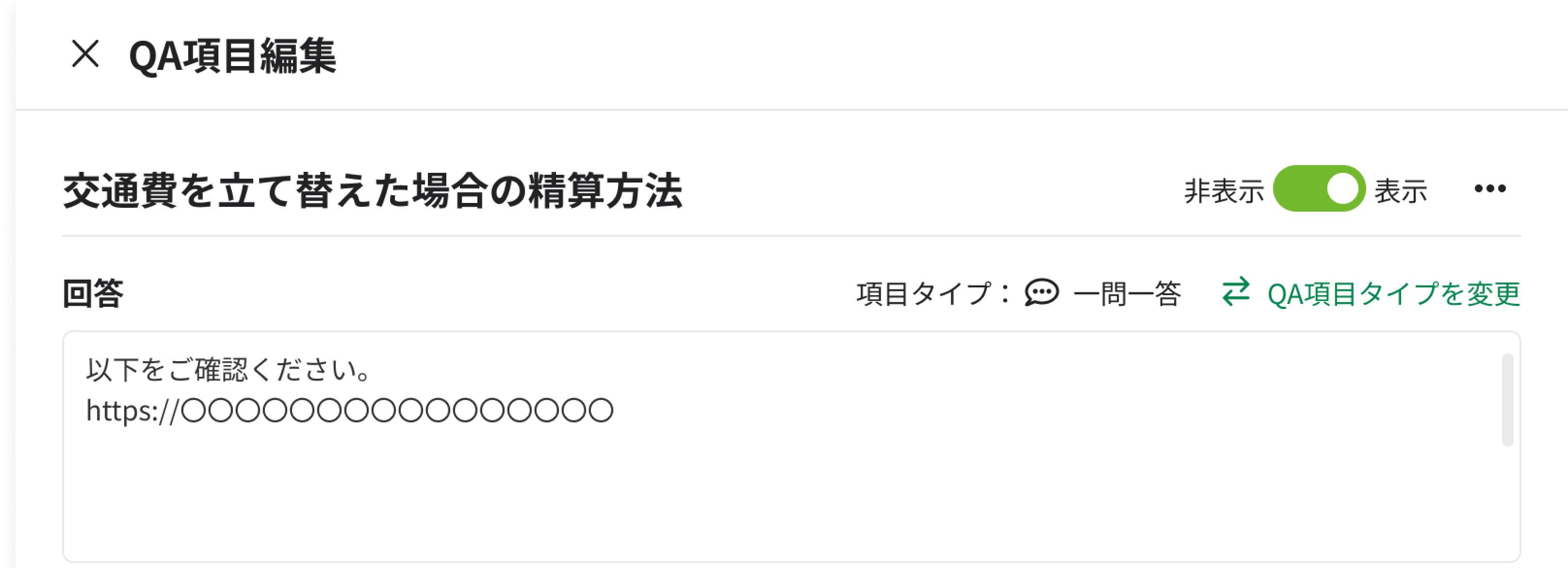 例)交通費の立て替えに関する回答