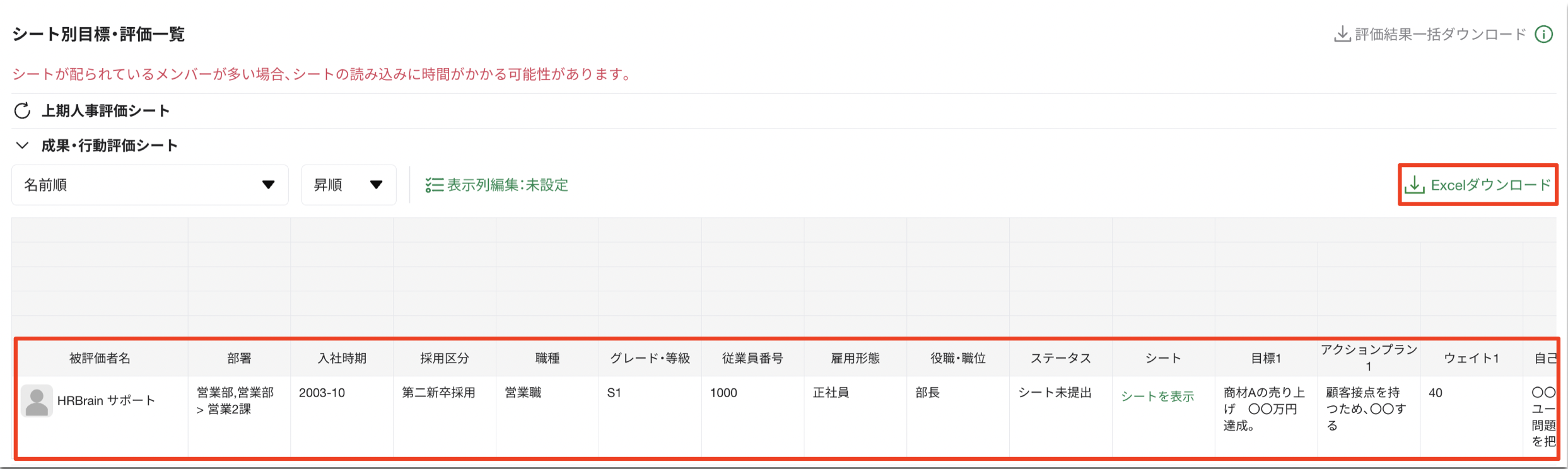 カスタマイズシートでも目標・評価一覧表示、Excelダウンロードができるようになりました!!