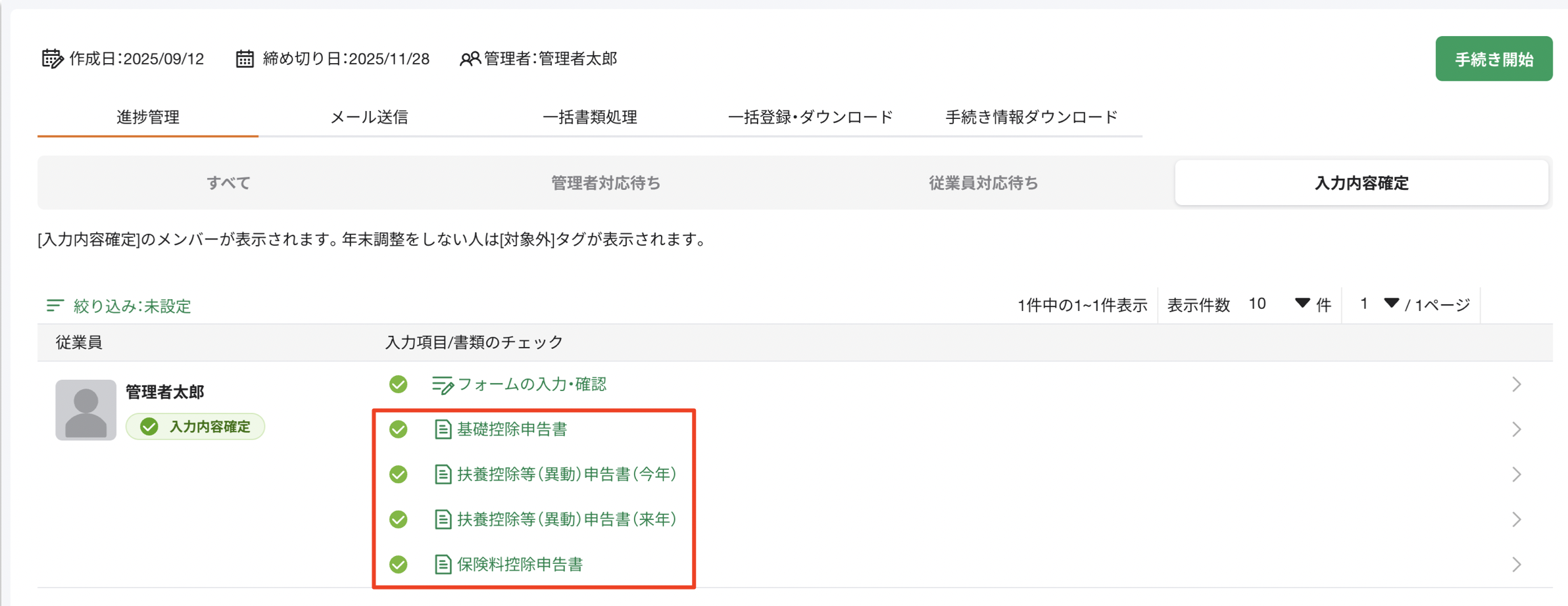 [メニュー] > [労務] > [共通管理] > [権限設定] > [ロール設定] > [手続き] の各手続きにおいて、 [管理]にチェックが入っているロールが [メニュー] > [労務] > [共通管理] > [権限設定] > [ロール付与] にて付与されている人です。