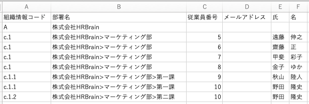 ▷社員名簿/部署情報のCSV一括アップロード方法