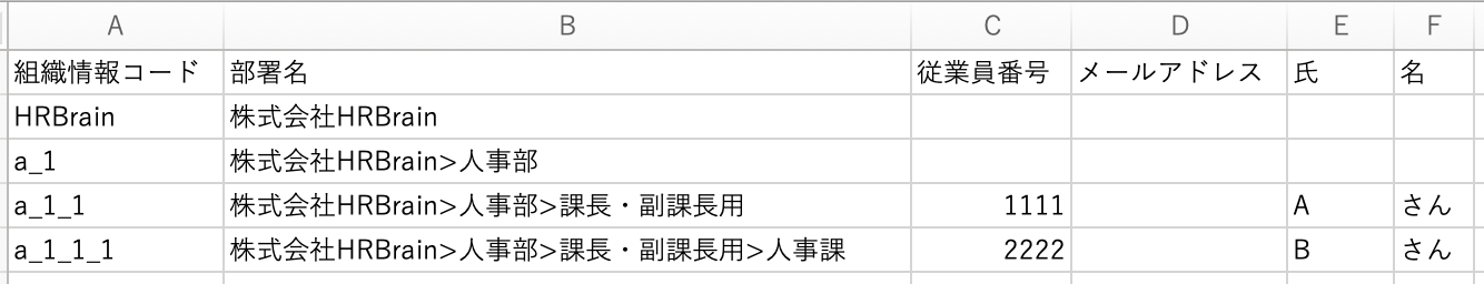 | Bさん | 副課長 | 人事部 > 課長・副課長用の部署 | あり |