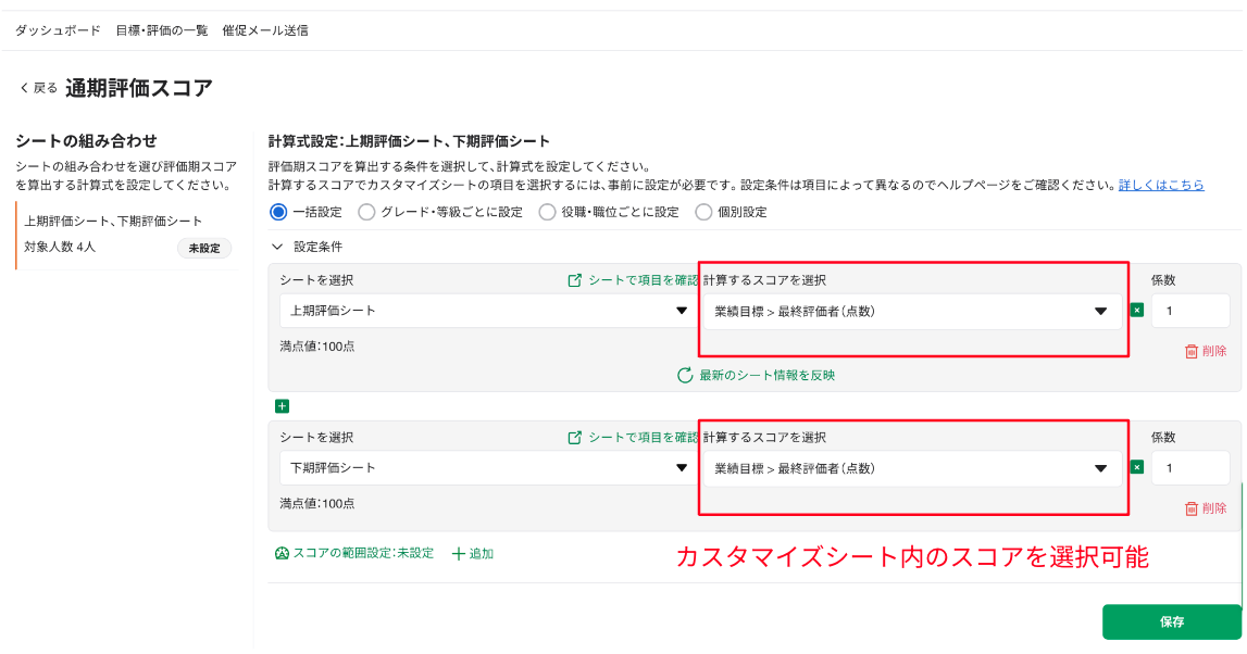 評価期スコアの対象シートにカスタマイズシートを選択可能になりました!!