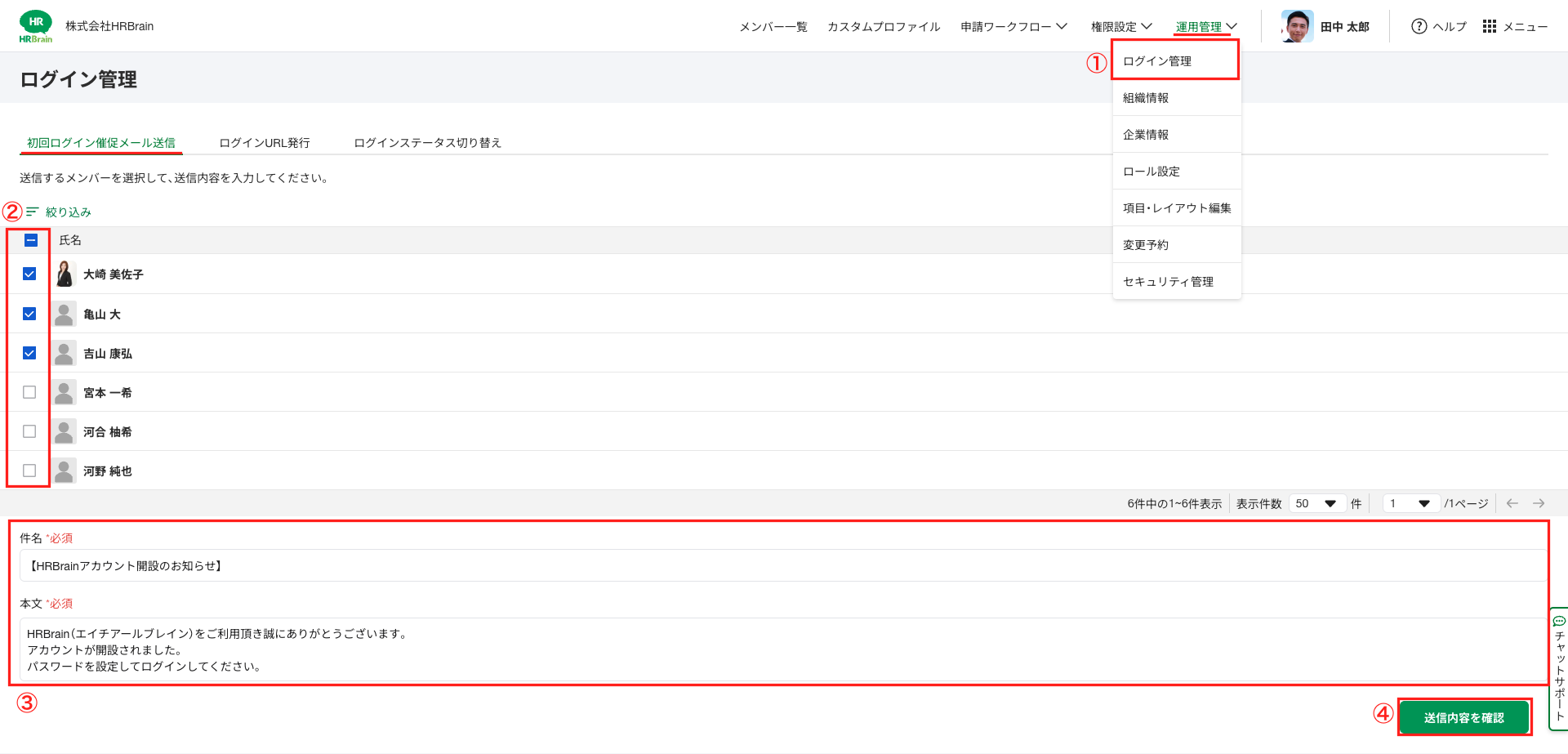 ここでは社員名簿でログインURLを発行し、メンバーに向けて送付する方法を説明します。