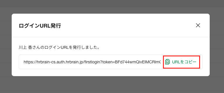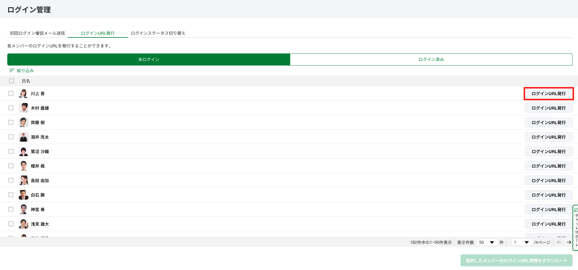 A. ログインURLを発行したいメンバーの[ログインURL発行]ボタンをクリック