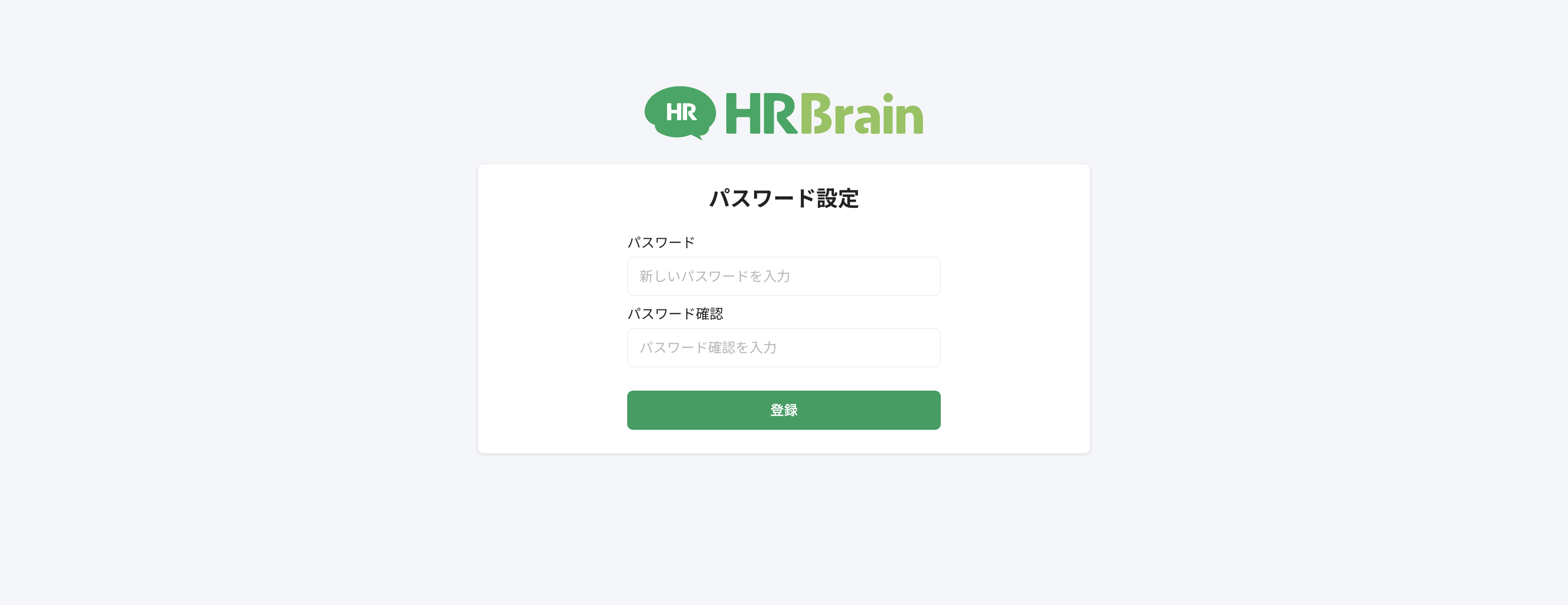 パスワードを12文字以上で設定し、確認用含め2回入力を行うとHRBrainにログインすることができます。