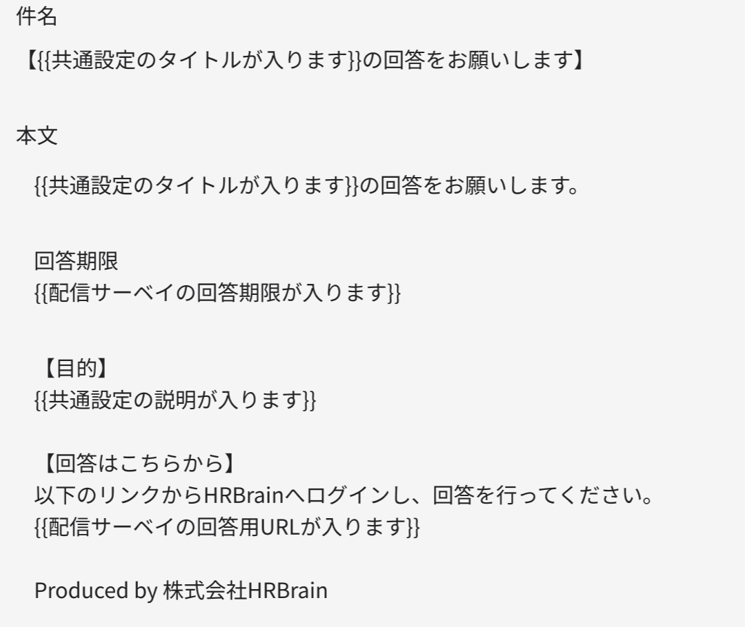 ・メールに記載される共通設定の内容はサーベイ配信時のものです。配信後に内容を変更しても自動催促メールには反映されません。