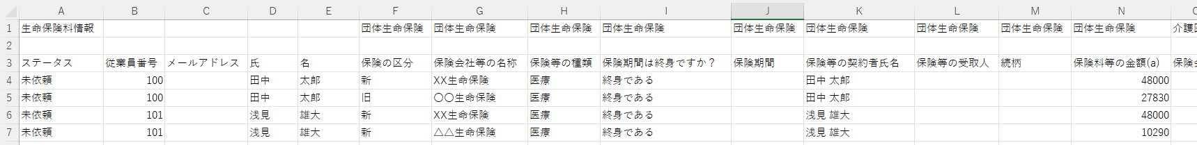 ・列は、[メールアドレス][従業員番号][氏][名]をダウンロードしたまま