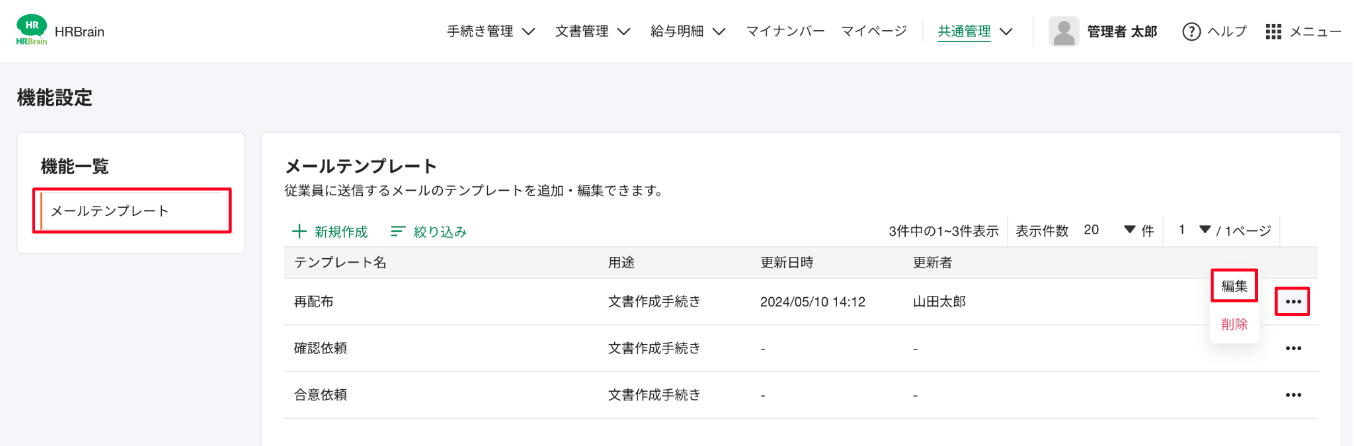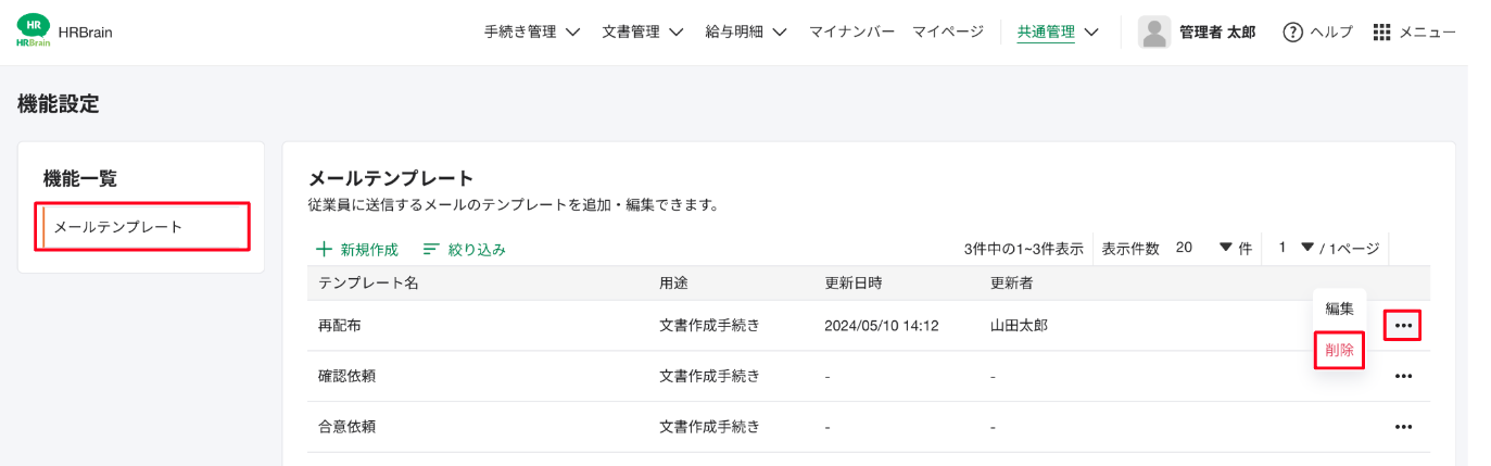 ・テンプレートの編集・削除方法