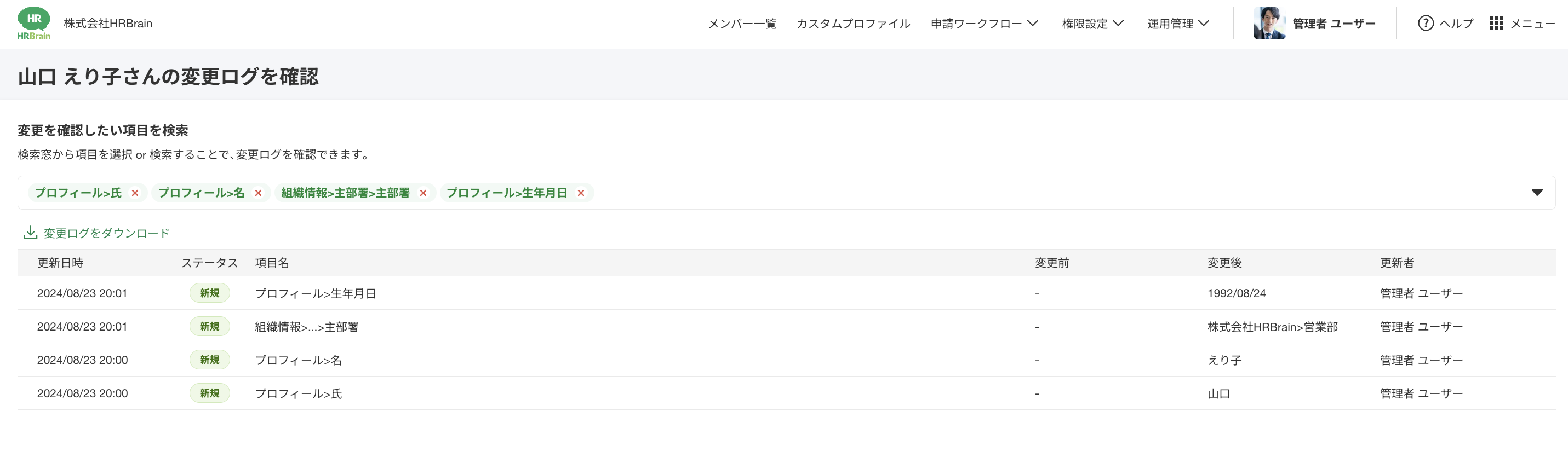 データ登録した日時は変更ログで確認が可能です。