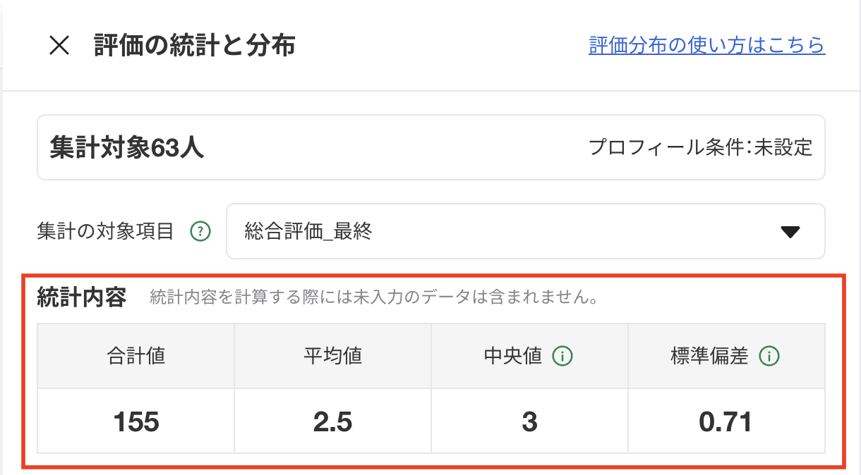 被評価者を3000人以下に絞り込むことで分布表示が使用できます。