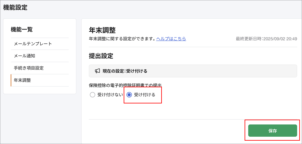 電子的控除証明書の提出を受け付ける