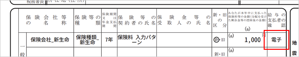 電子的控除証明書で保険情報を登録した場合は、[給与支払者の確認印]欄に[電子]と表示されます