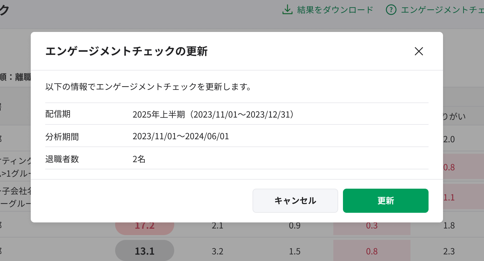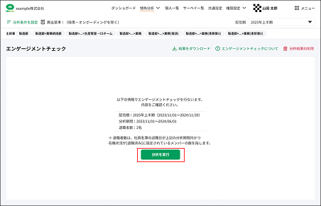 2. エンゲージメントチェックに使用する情報(配信期・分析期間・退職者数)を確認します。