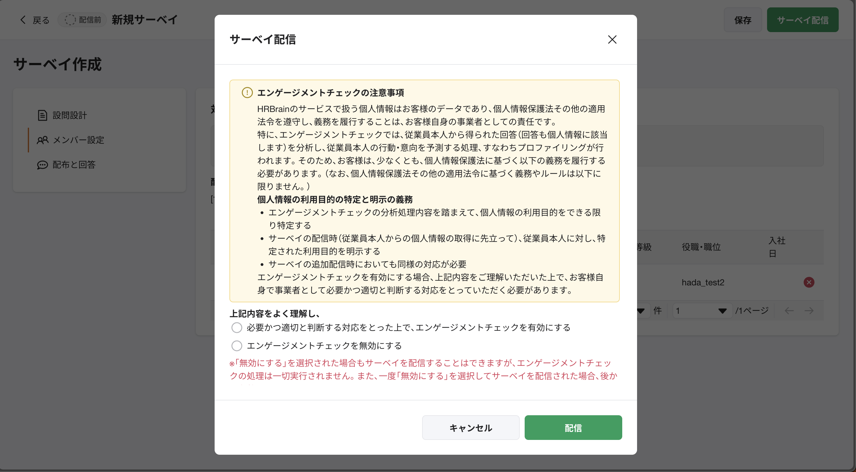 サーベイ配信の際、エンゲージメントチェックの利用要否を選択してください。