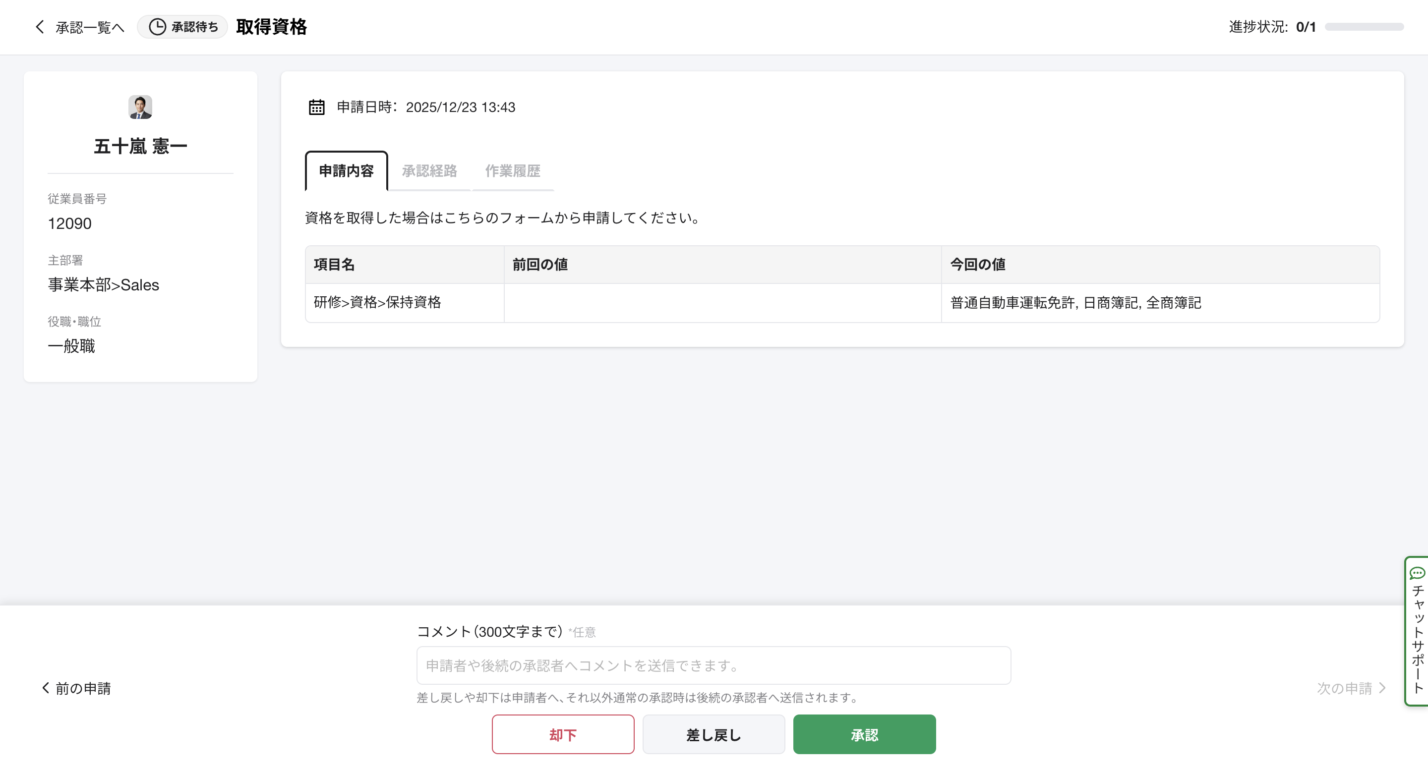 • 画面下部のボタンをクリックすることで承認ステータスが更新できます