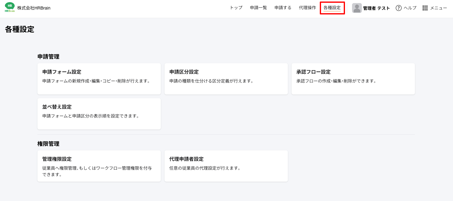 | 申請フォーム設定 | 申請フォームの作成・編集・コピー・削除が行えます |