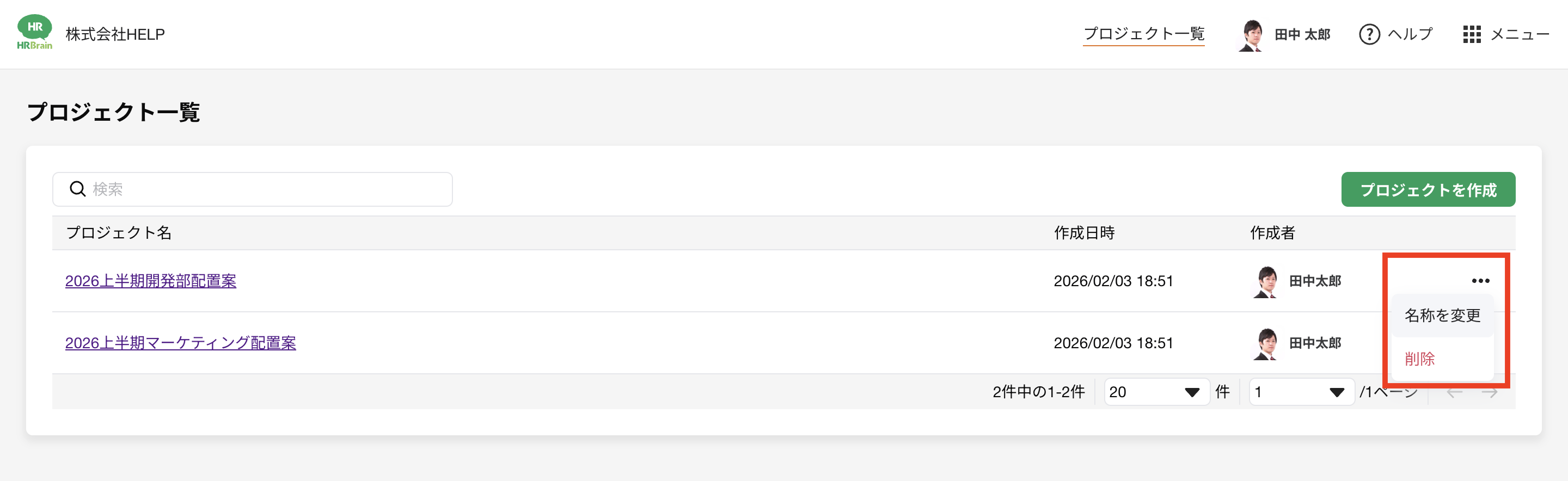 ①[プロジェクト一覧]>対象のプロジェクト名の[・・・]をクリック