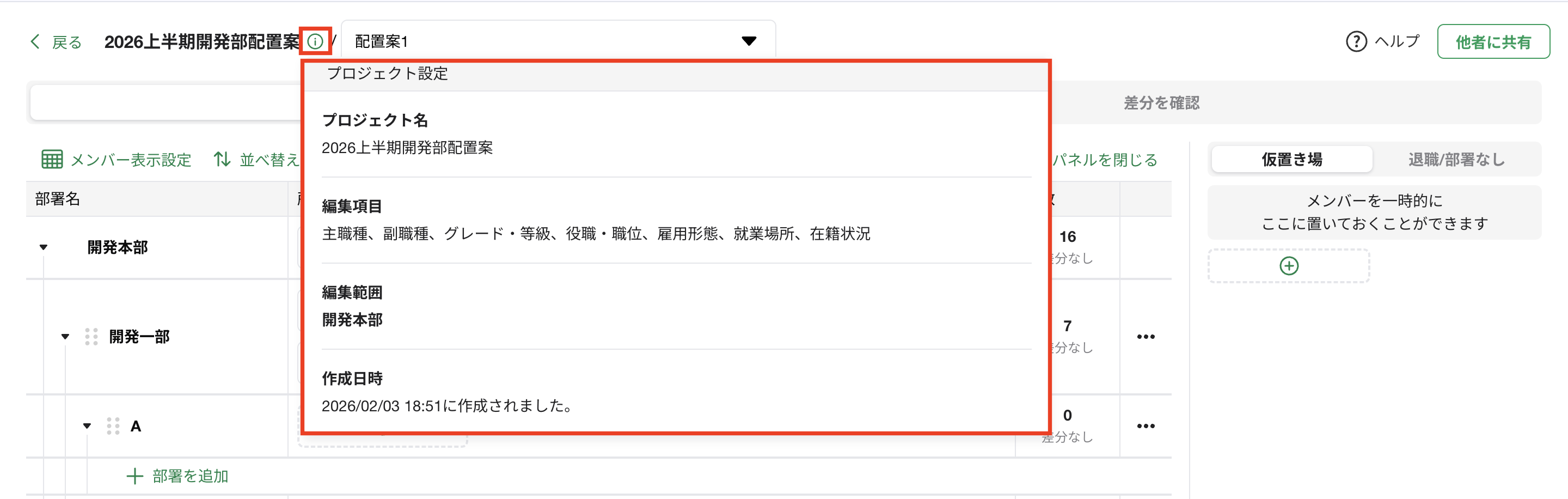 メンバー情報・部署情報は、プロジェクト作成時点の情報が固定されます。