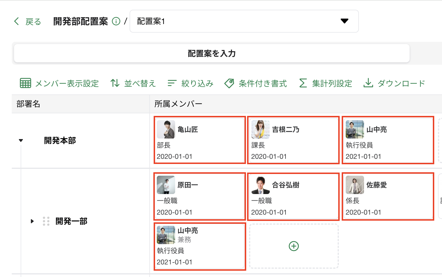 複数名の配置変更があった場合には、該当メンバー間で並べ替え条件が適応されます。