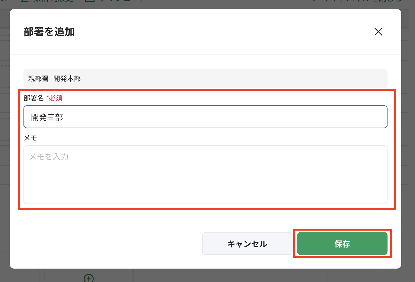 変更したい部署名の左側にあるドラッグハンドルをクリックし、ドラッグ&ドロップで移動ができます。