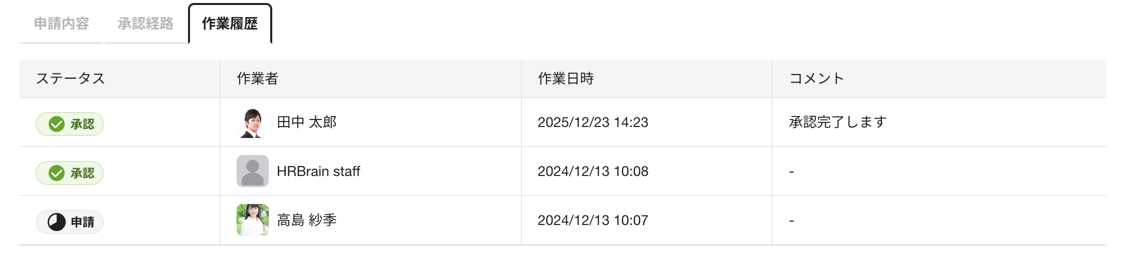 承認者 | 申請者の申請コメント | ○ | |