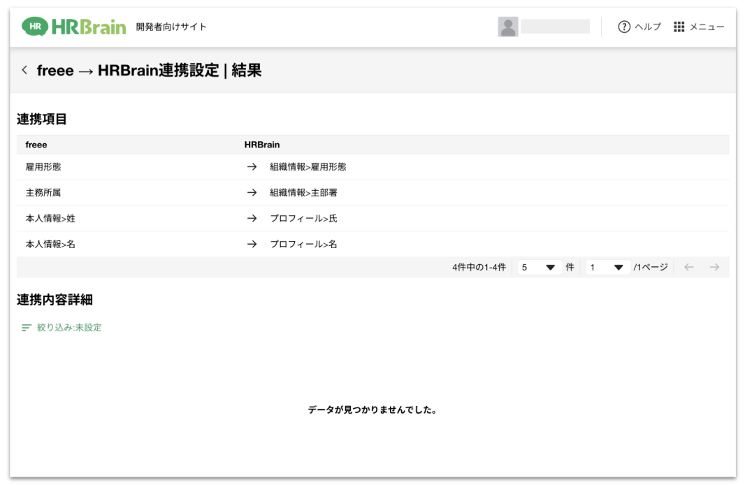・データの更新がない場合、連携内容詳細には何も表示されません