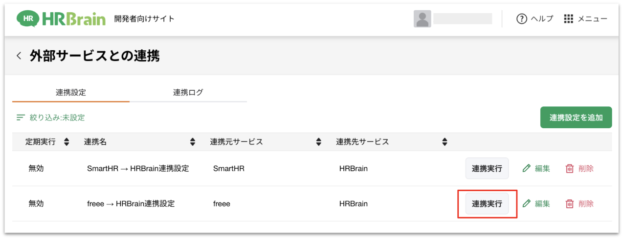 手動でデータ連携を行いたい場合は、[連携実行]ボタンをクリック