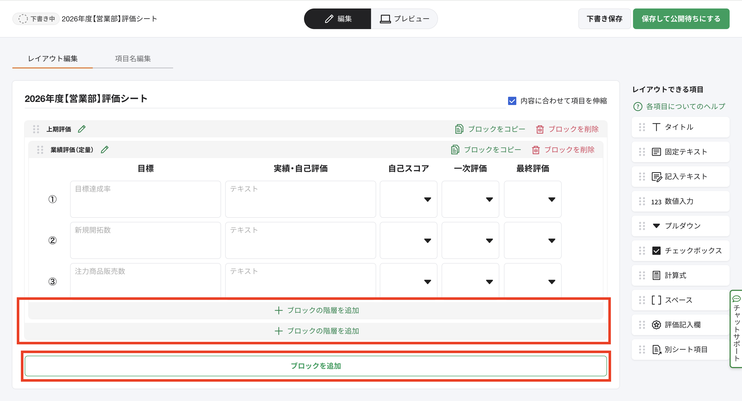 人事評価/「ブロックを追加」と「ブロックの階層を追加」の違い