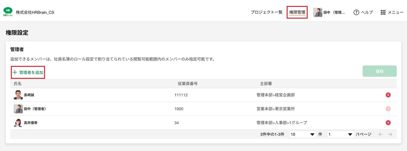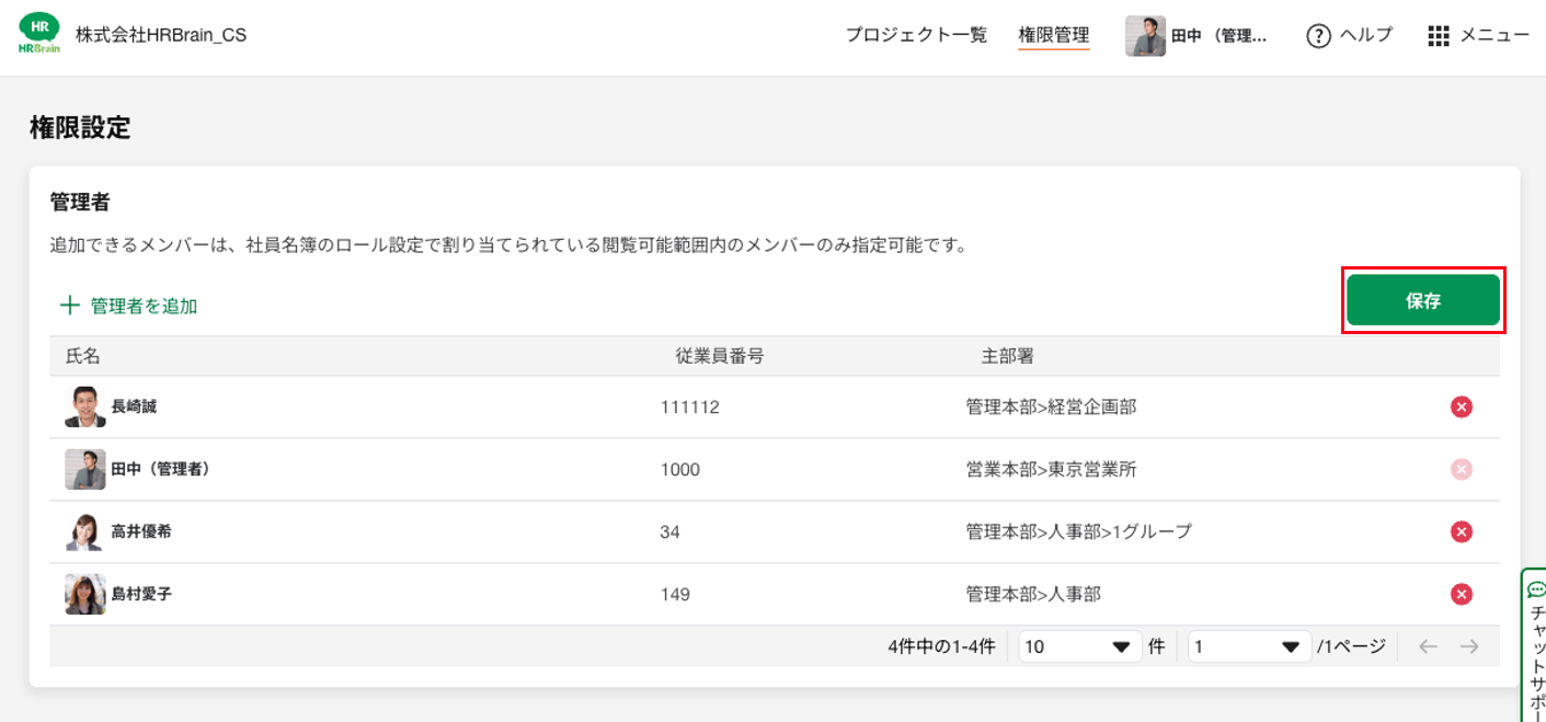 管理者権限は、社員名簿の管理者(運用責任者など)を設定されることを推奨します。