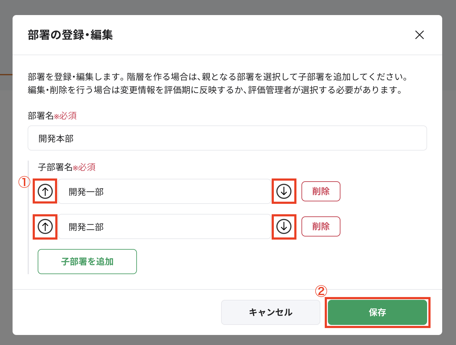 人事評価/部署の登録・編集・並び替え・削除