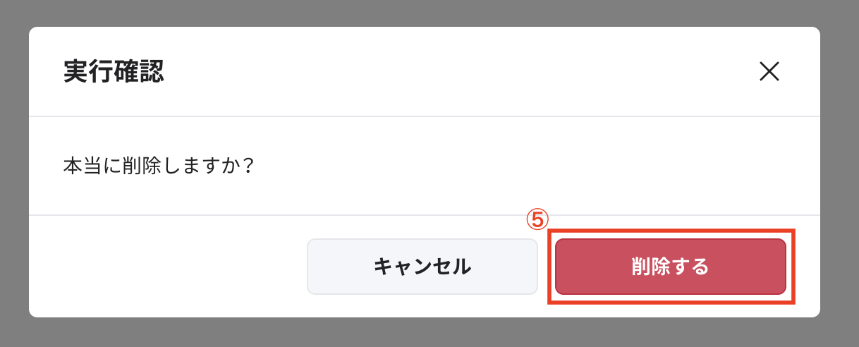 ⑤確認画面が表示されるので[削除]をクリック