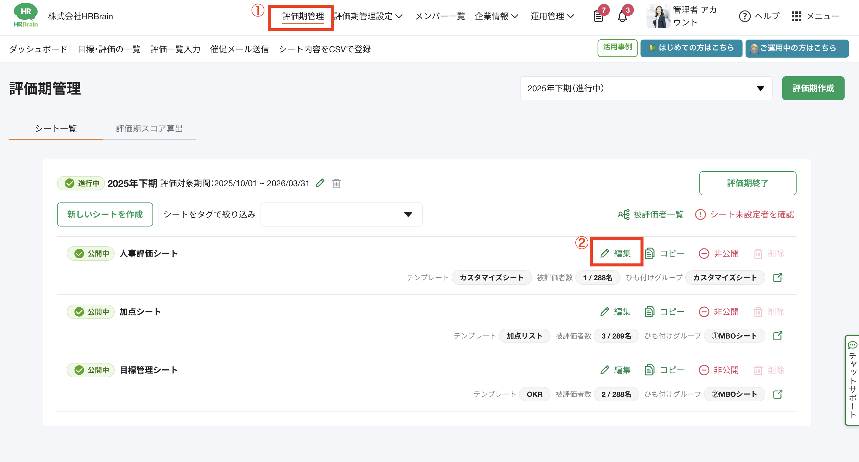HRBrainでは管理者が作成したシートを被評価者に配布することを、公開といいます。