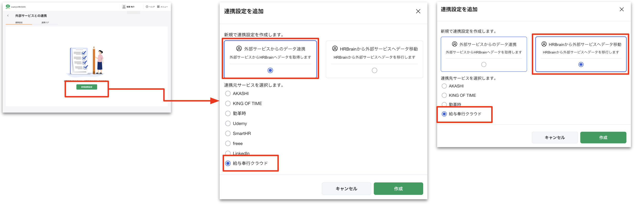 ・HRBrain → 給与奉行クラウド ・給与奉行クラウド → HRBrain |