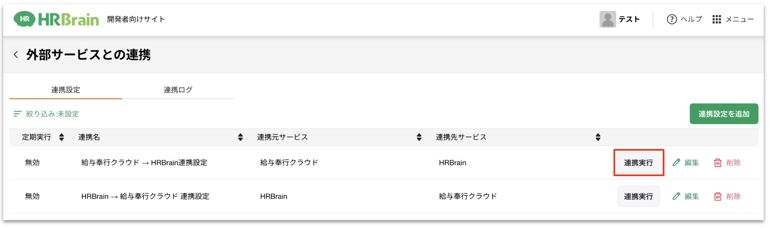 手動でデータ連携を行いたい場合は、[連携実行]ボタンをクリック