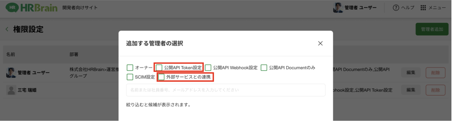 ▷データ連携/開発者向けサイトについて>開発者向けサイト内の権限付与の方法