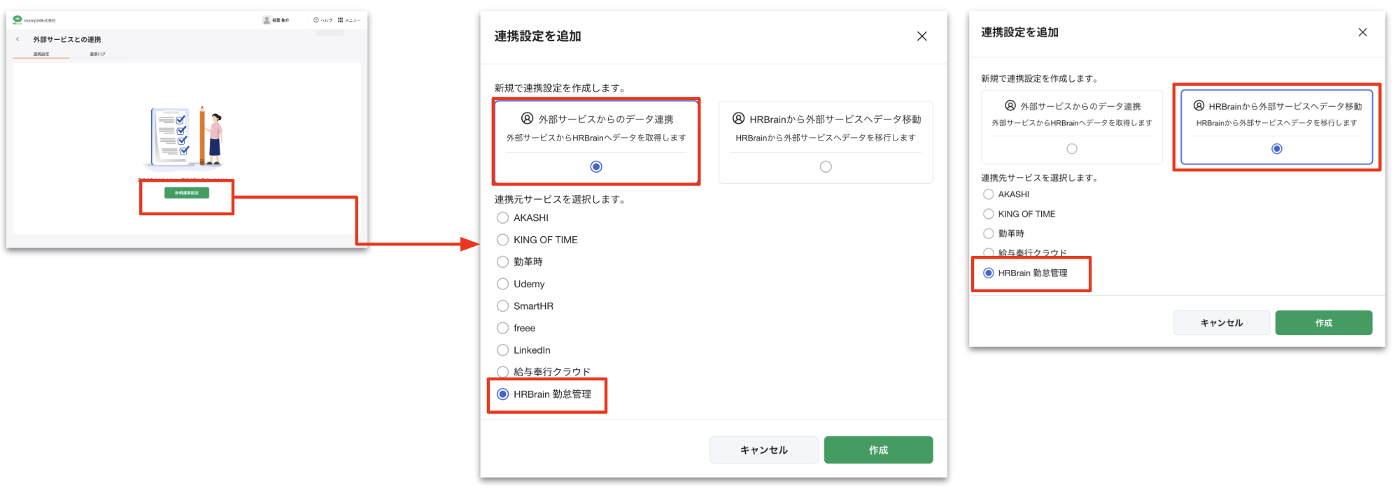 a.HRBrain→HRBrain勤怠管理連携設定の場合