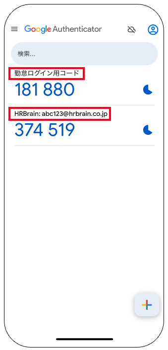 他のサービスでも2要素認証を使用している場合、アプリ上に複数のコードが表示されます。