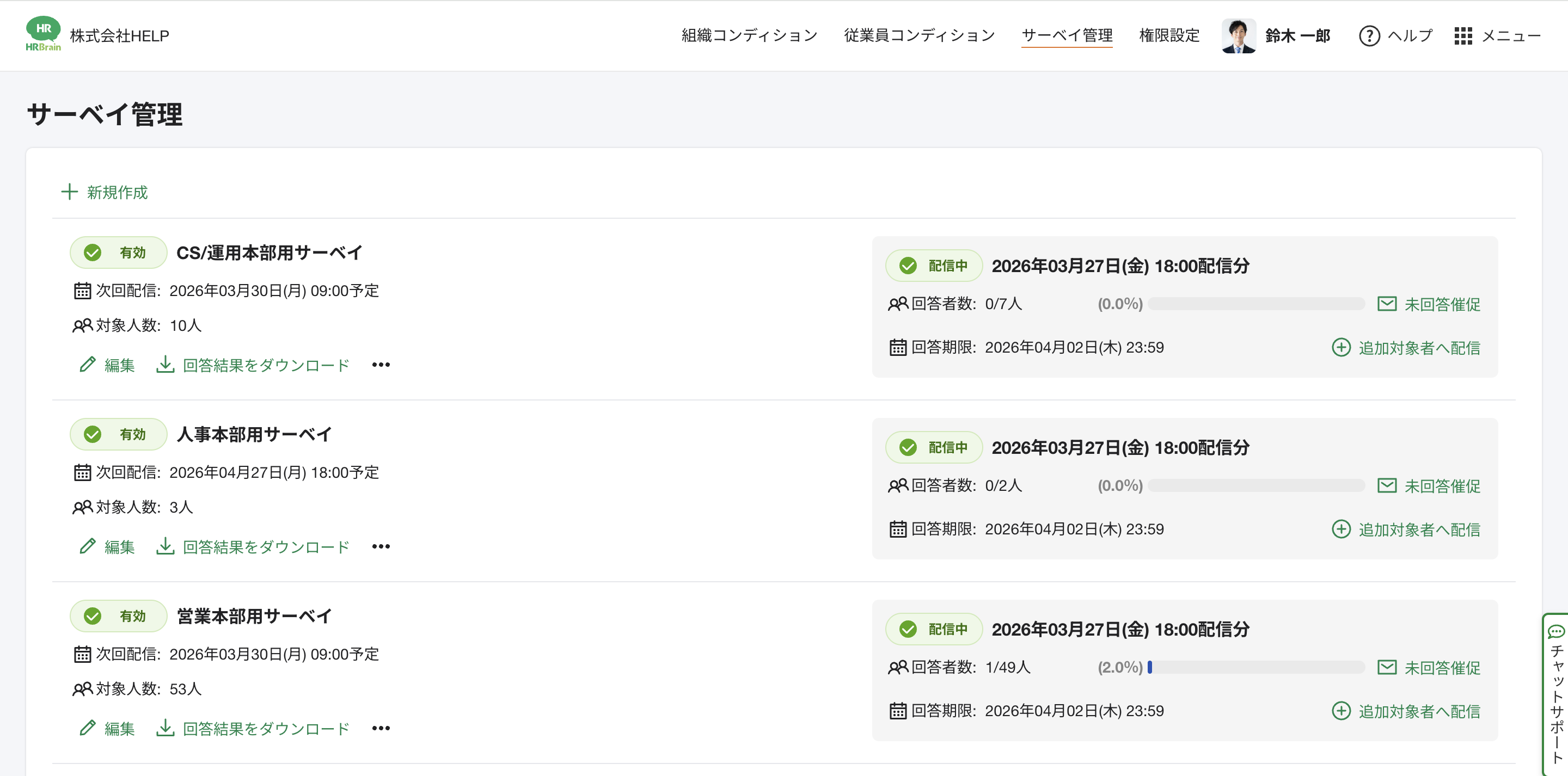 ・部署ごとにサーベイを分けて作成/配信している(営業本部用サーベイ、人事本部用サーベイなど)