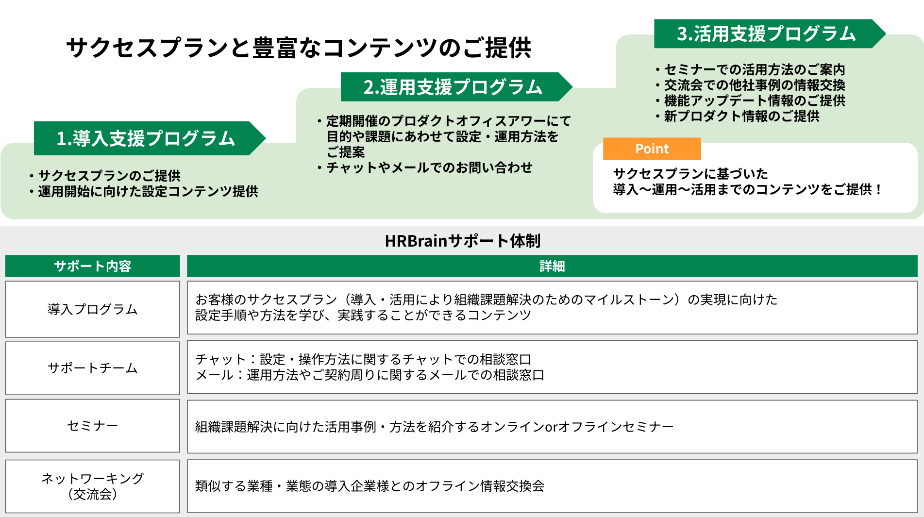 導入プログラムに沿ってHRBrainの設定・運用をしていただくだけで、サクセスプランの実現が可能になります。