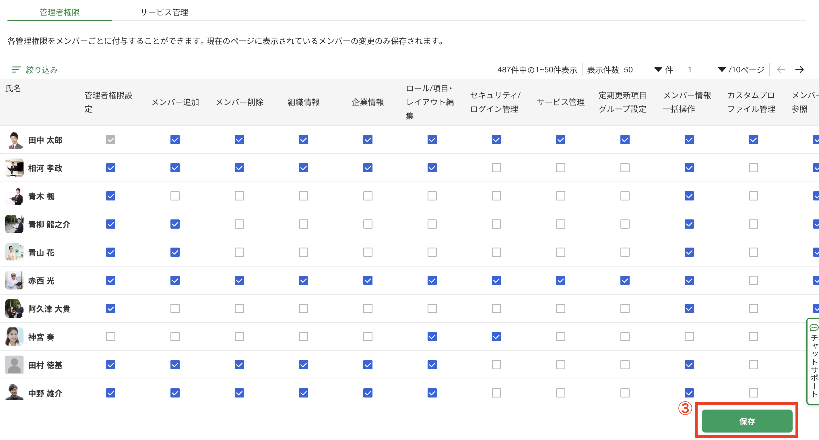 ※メンバー登録後、メンバー一覧にメンバーを表示させるためにはロール設定にてアクセスが許可される必要がございます。